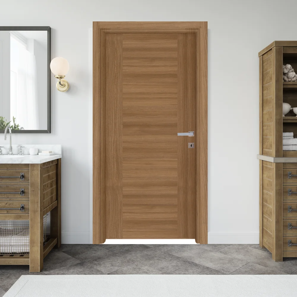 Melamin kaplamalı kapılar, pürüzsüz yüzeyleri ve geniş renk seçenekleriyle estetik bir görsellik sunar. Ahşap dokuları, düz renkler, desenli yüzeyler ve özel kaplama seçenekleri ile her türlü iç mekan tasarımına uyum sağlar. Modern, klasik veya minimal stil arayışındaki kullanıcılar için ideal bir tercihtir.